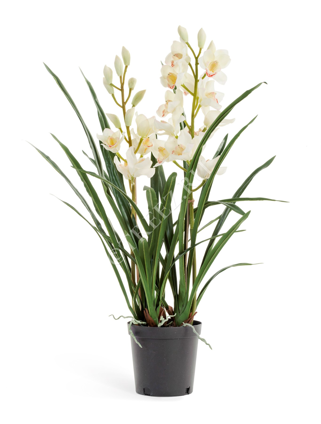 Орхидея Цимбидиум белая куст в кашпо 2 ветки