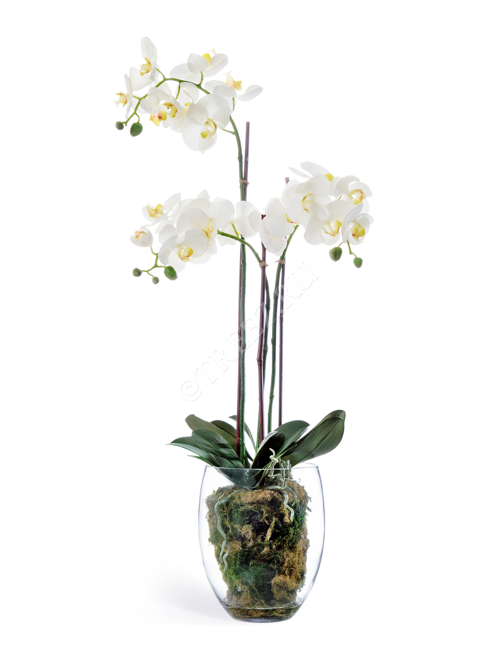 Поставляется готовой композицией в стекле с имитацией мха, земли и воды.