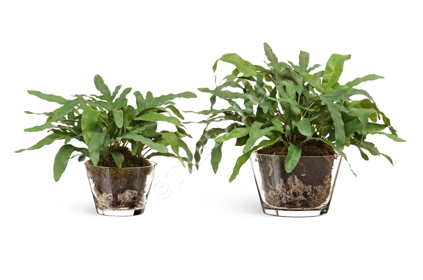 "Rabbit Foot" в стеклянной вазе с мхом, корнями, землёй
