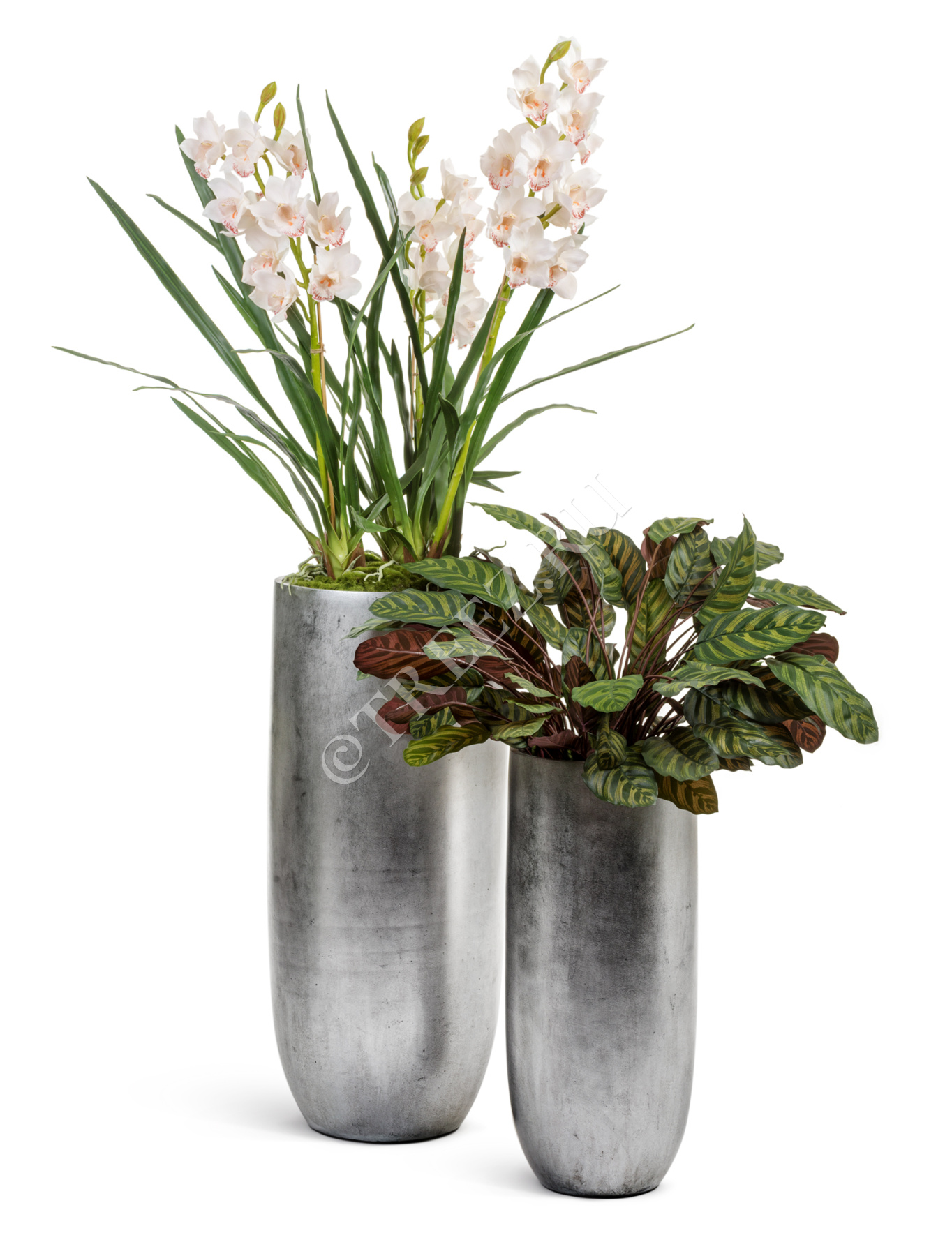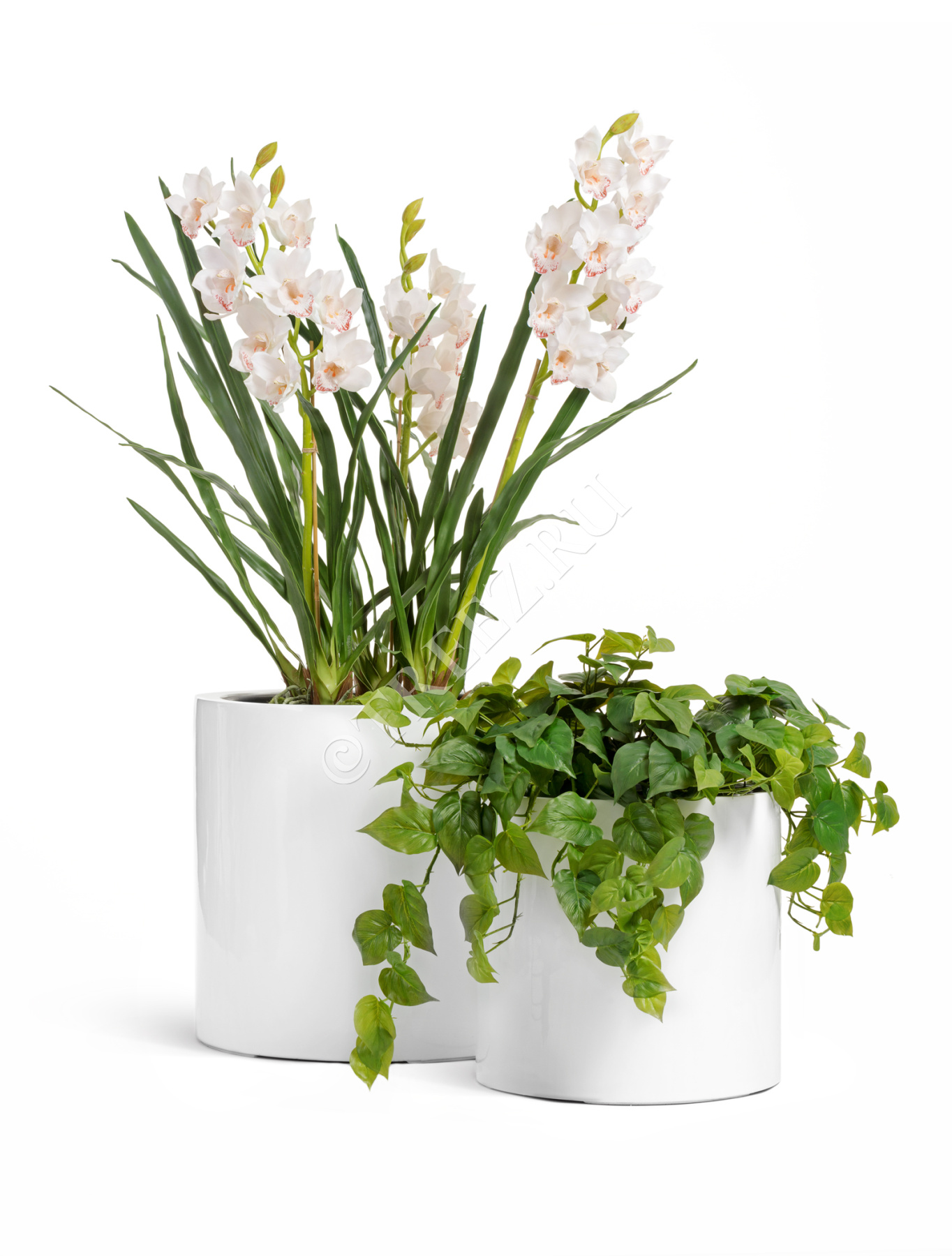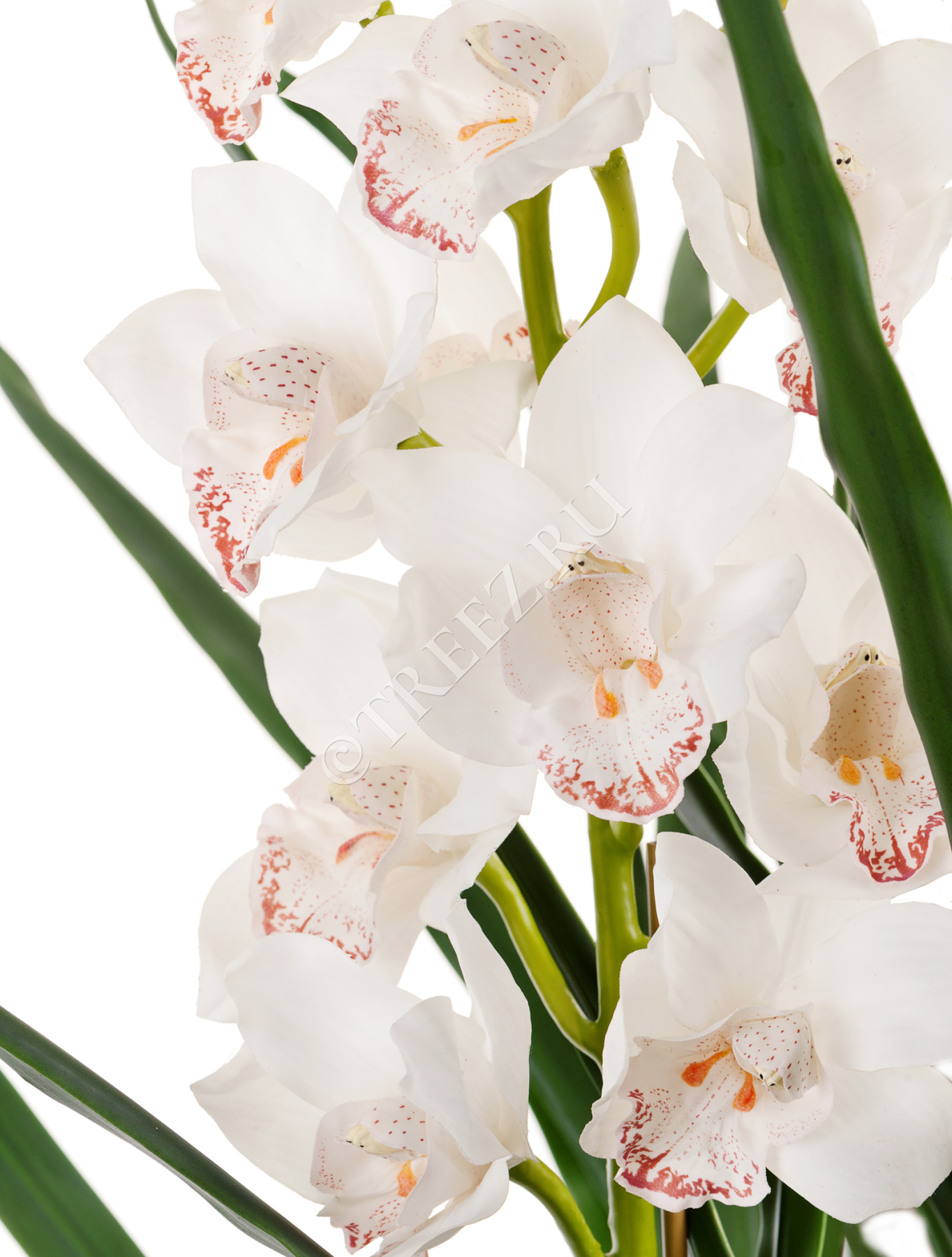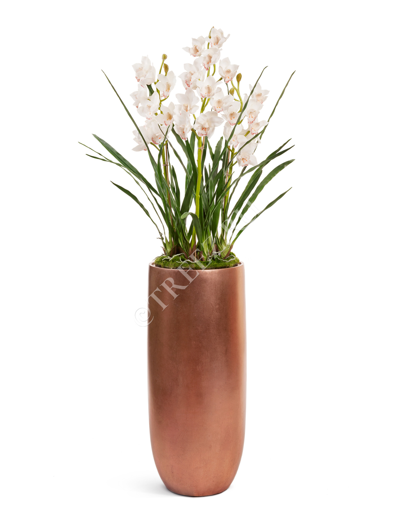 Орхидея Цимбидиум куст белый 3 ветки с имитацией земли (без кашпо)