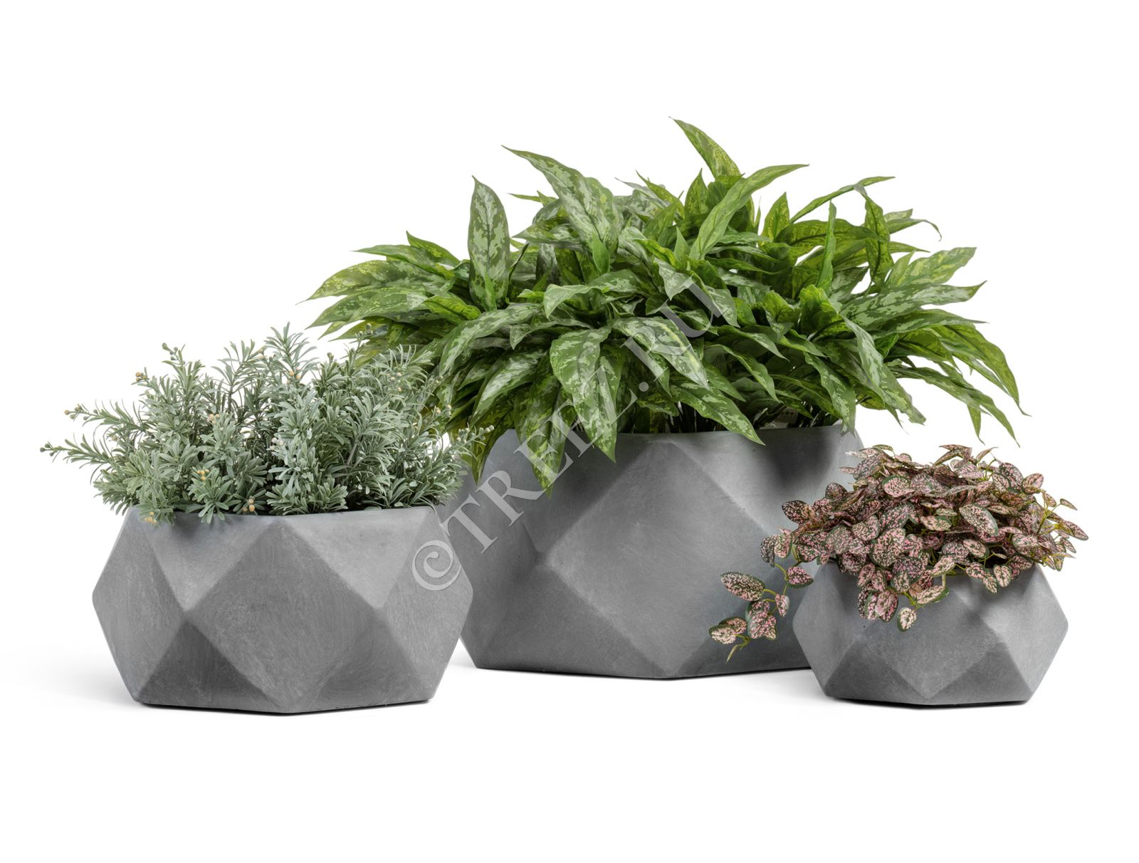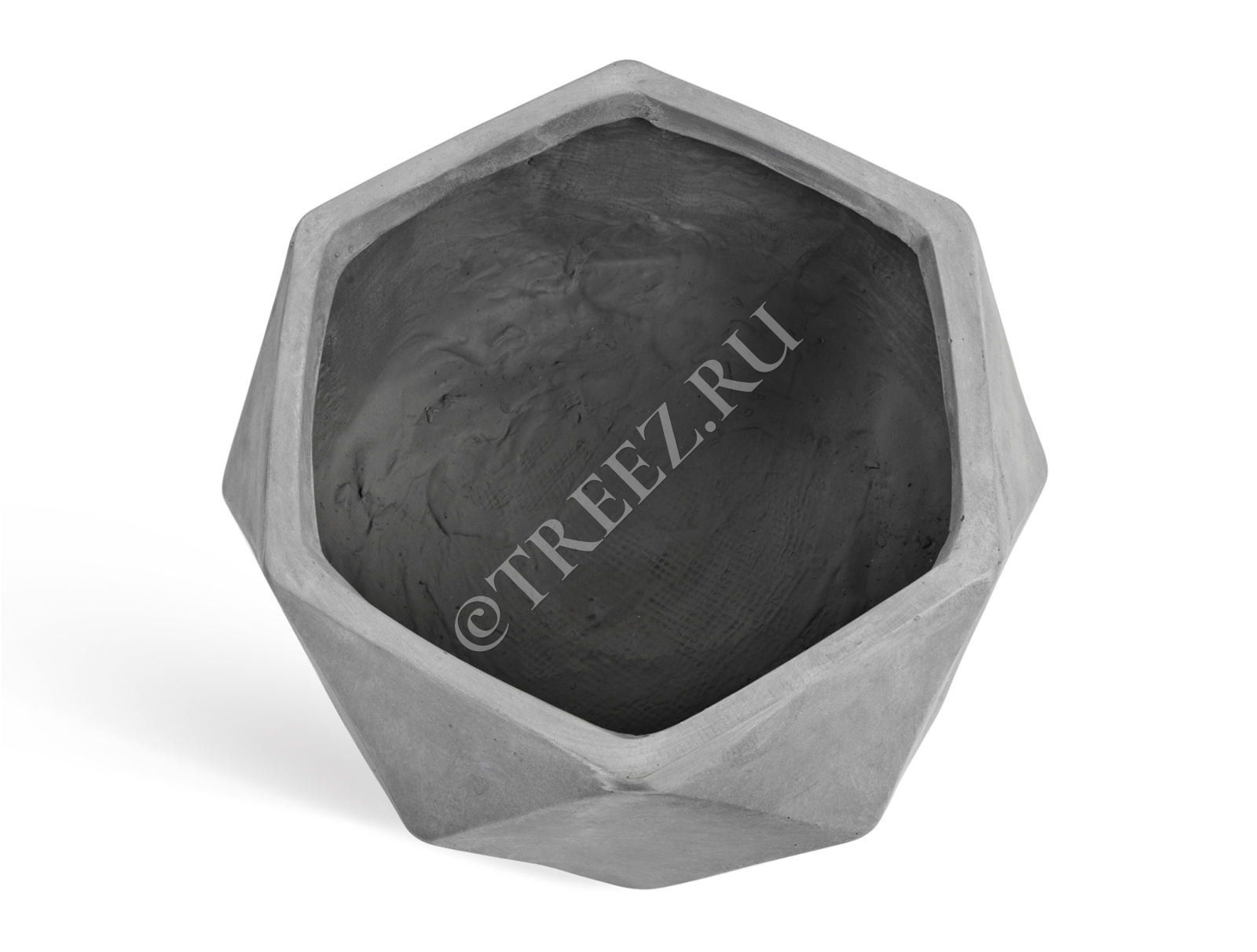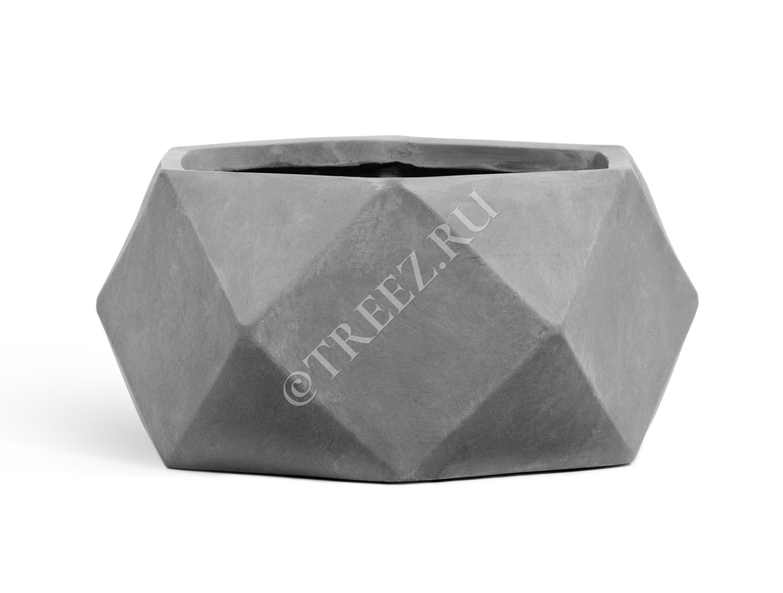 Кашпо TREEZ ERGO - Rombo - Низкая чаша-многогранник - Светло-серый камень