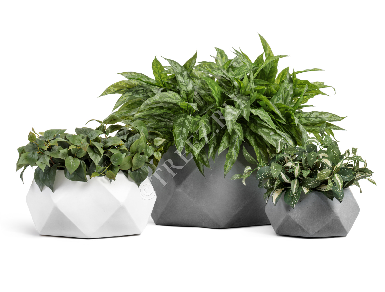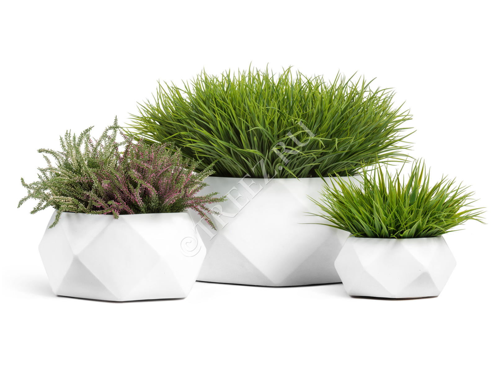Кашпо TREEZ ERGO - Rombo - Низкая чаша-многогранник - Белый камень