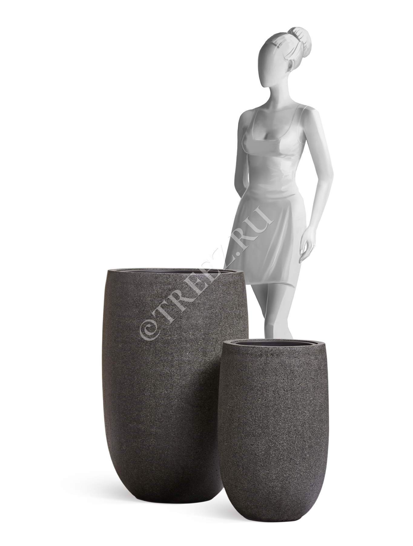 Кашпо TREEZ Effectory - Stone - Высокий округлый конус - Тёмно-серый камень