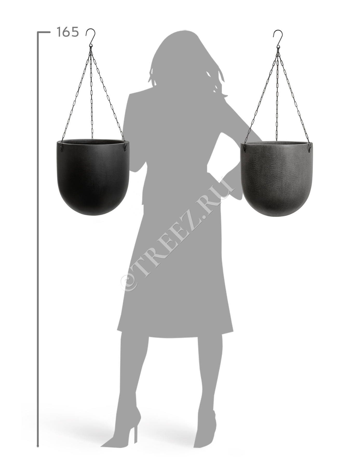 Кашпо TREEZ Effectory - Beton - Чаша большая подвесная - Тёмно-серый бетон