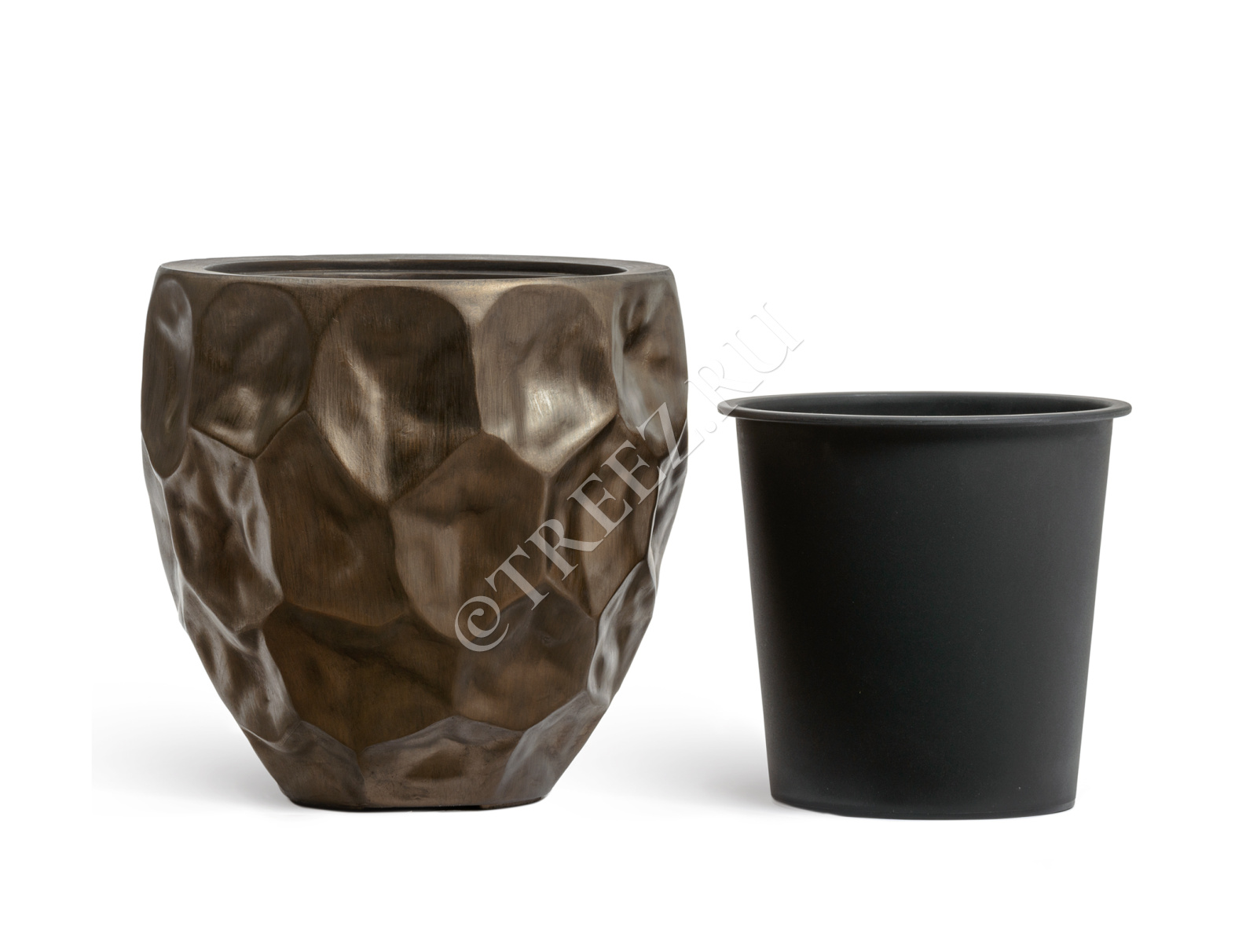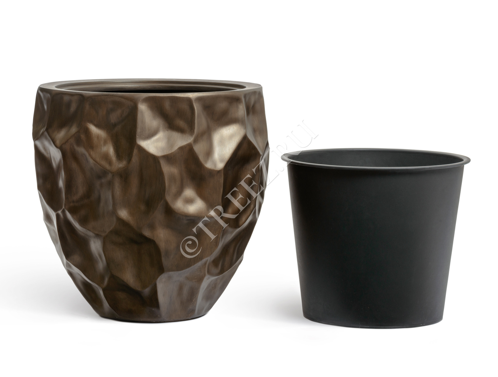 Кашпо TREEZ Effectory - Metal - Округлая чаша Design Crumple - Чернёная бронза