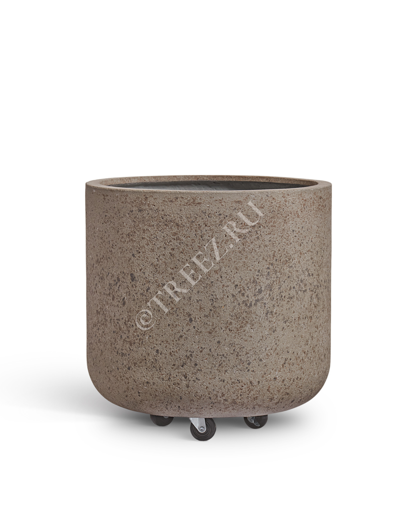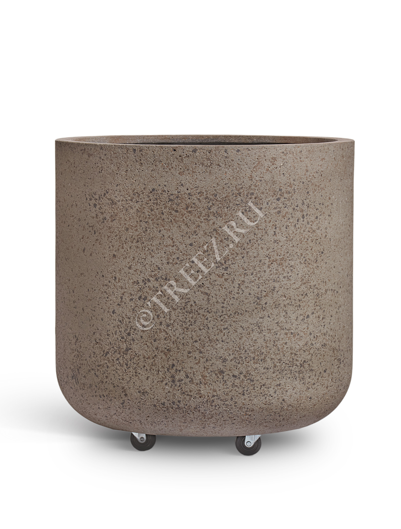 Кашпо TREEZ ERGO - Hard Rock - Цилиндрическая чаша на колёсиках - Песок серый беж