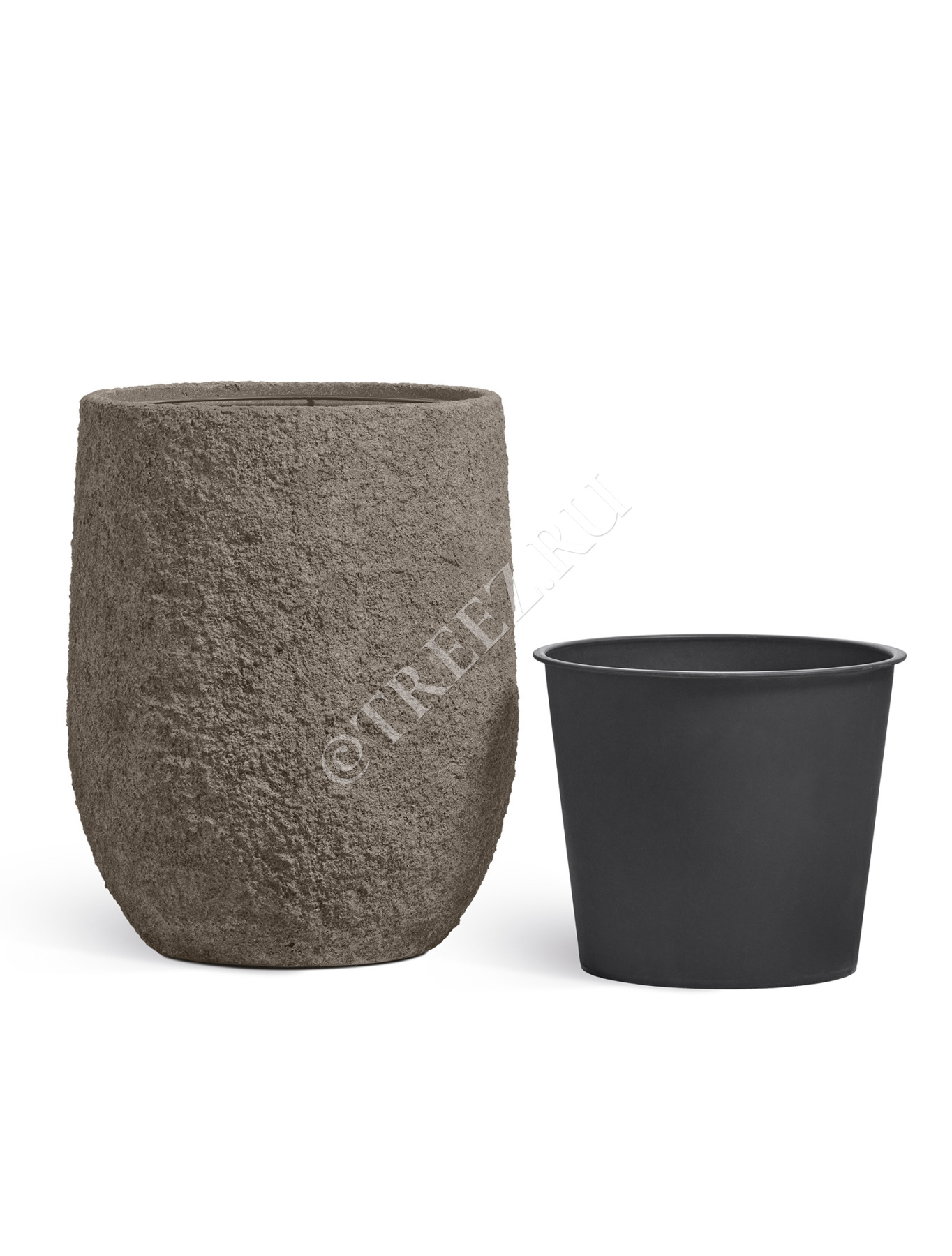 Кашпо TREEZ Effectory - Terra- Высокая чаша - Серый беж