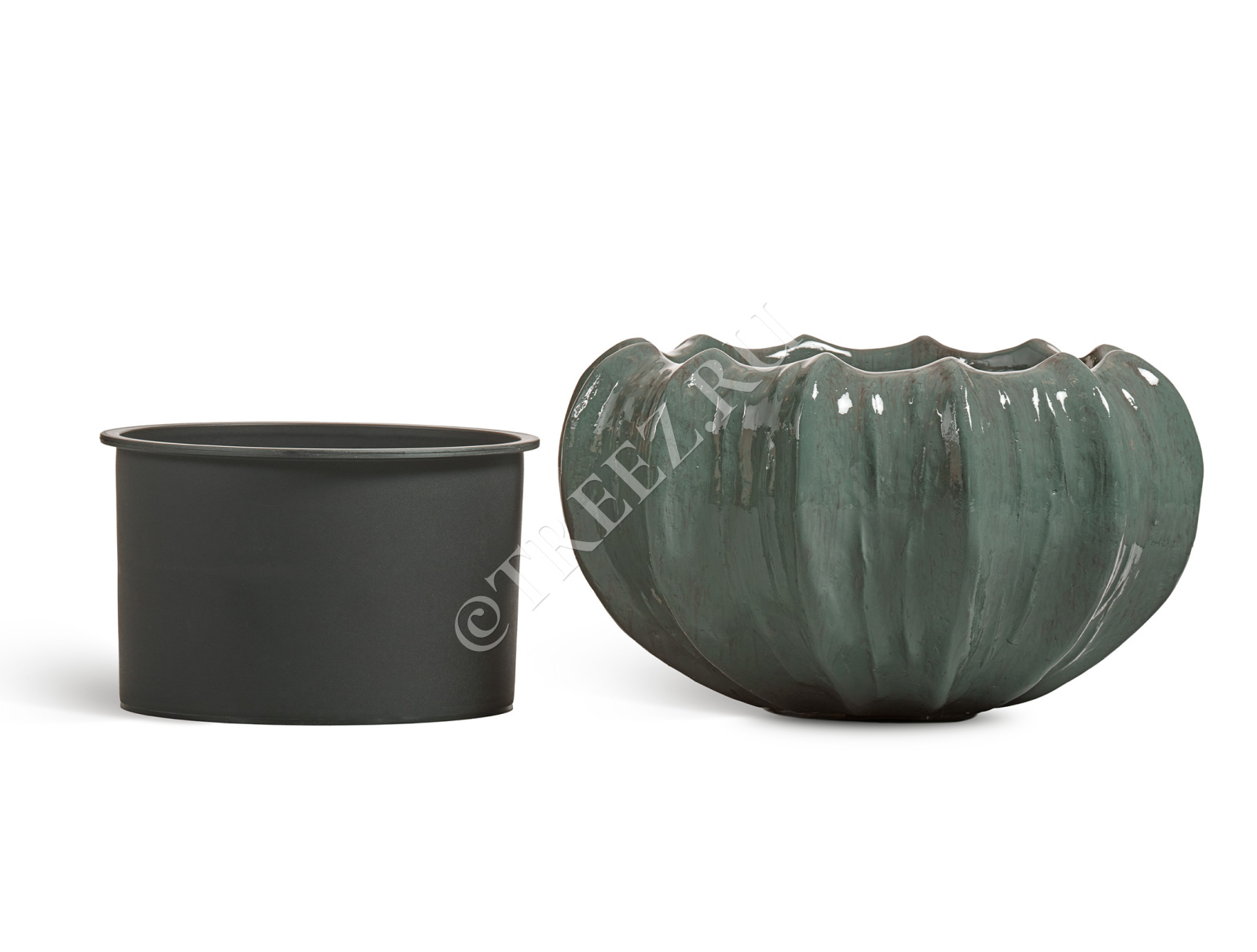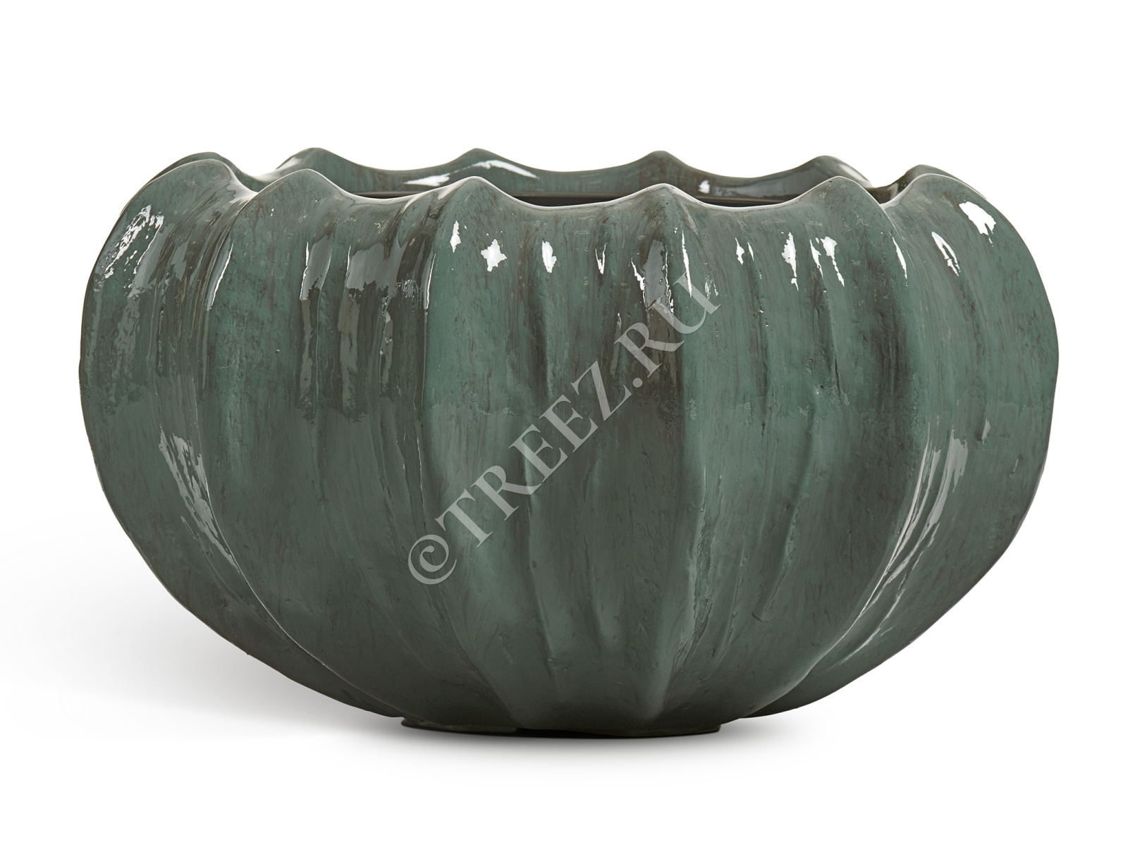Кашпо TREEZ Effectory - Aura - Низкая Design-чаша - Изумрудный лак