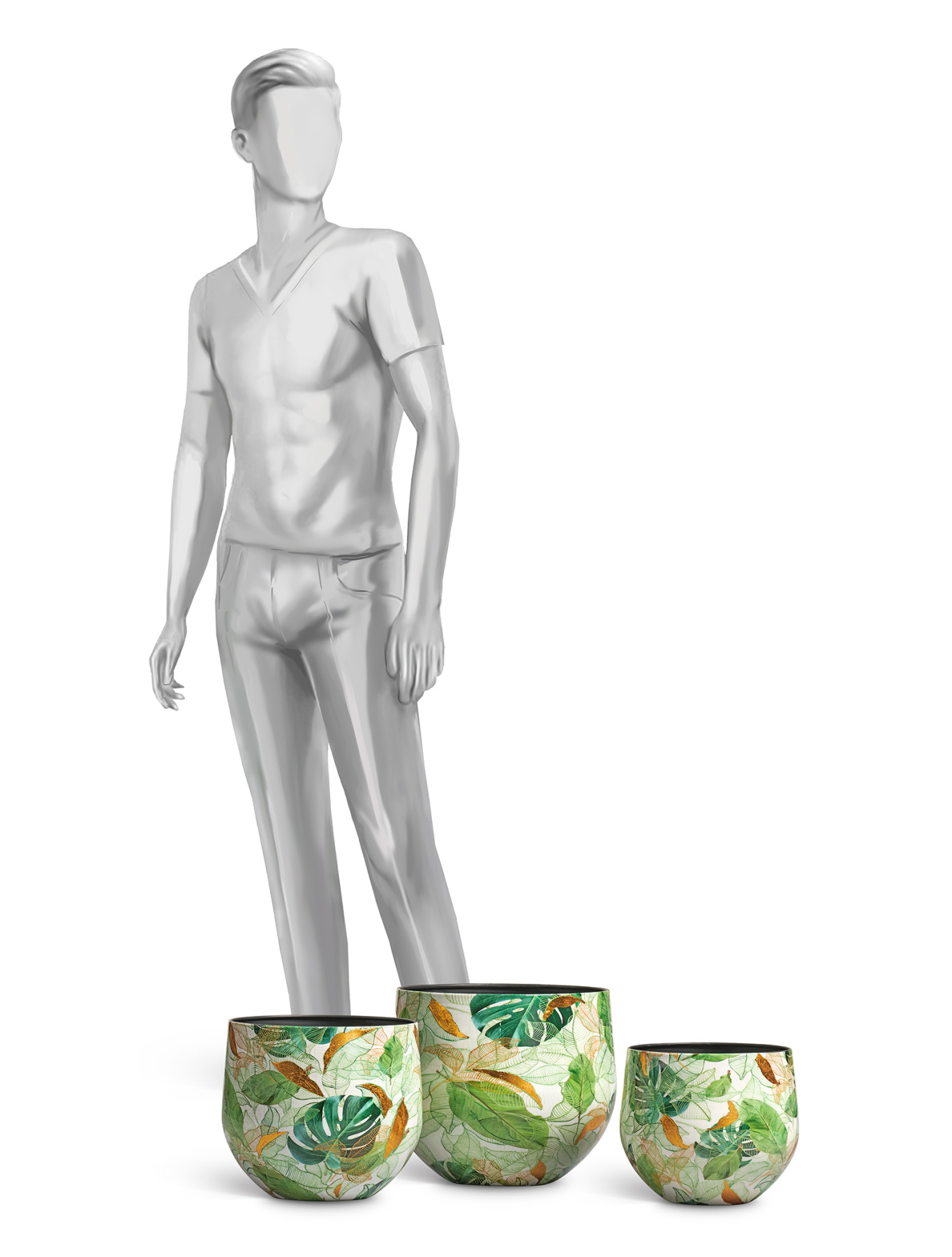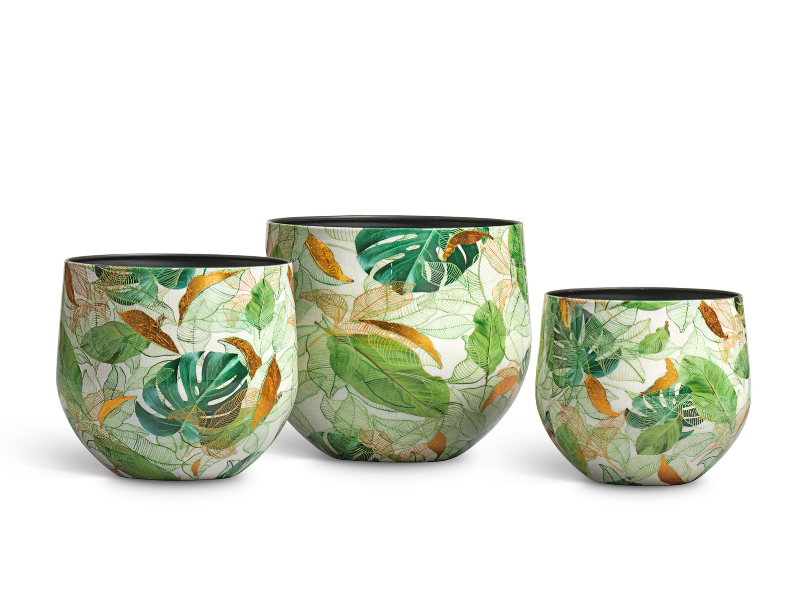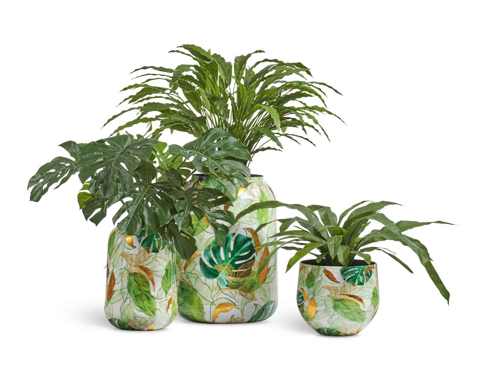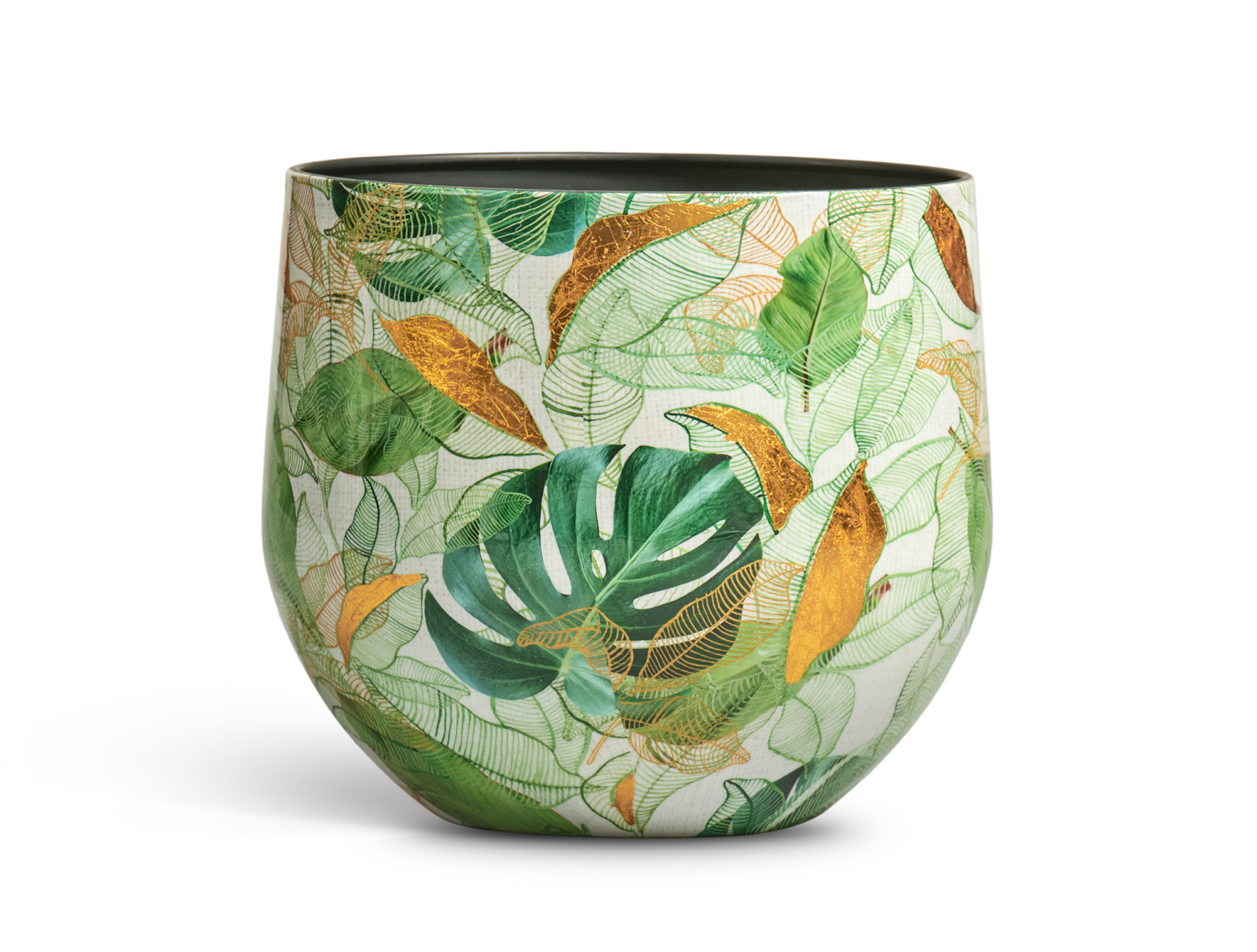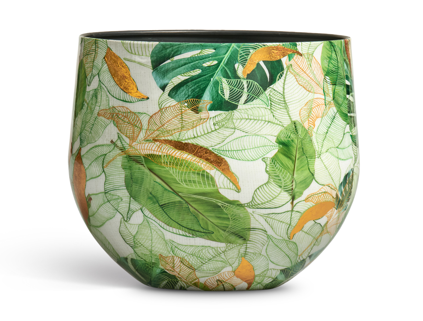 Кашпо коллекции Savage Garden созданы из настоящего металла и покрыты эффектной лаковой эмалью с трендовыми узорами и металлизированными украшениями рисунка.