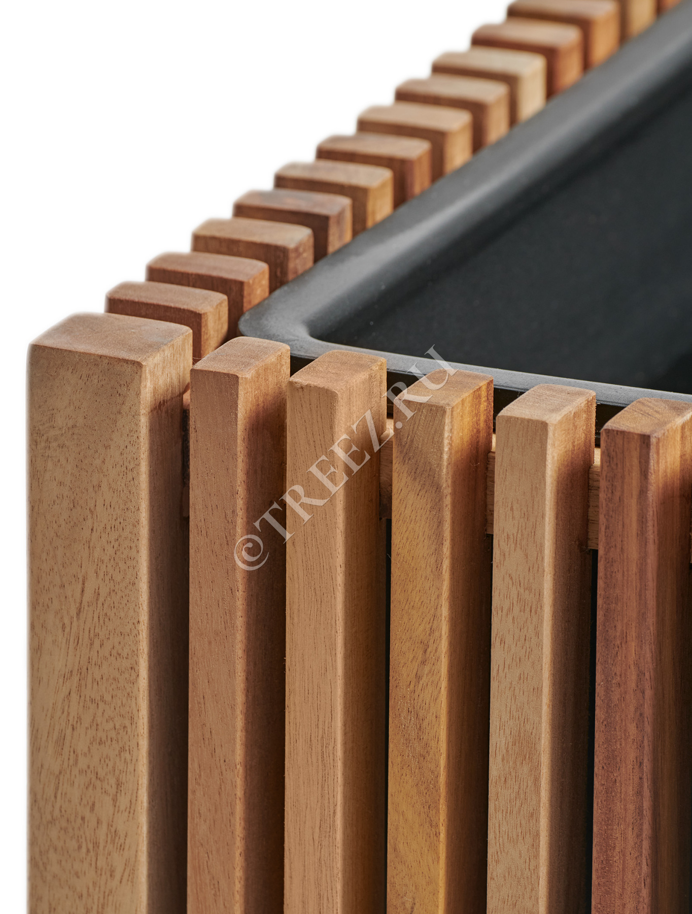 Кашпо Treez Effectory серии Timberline созданы из натуральной древесины тропической акации. Она отличается особой прочностью и не подвержена гниению.