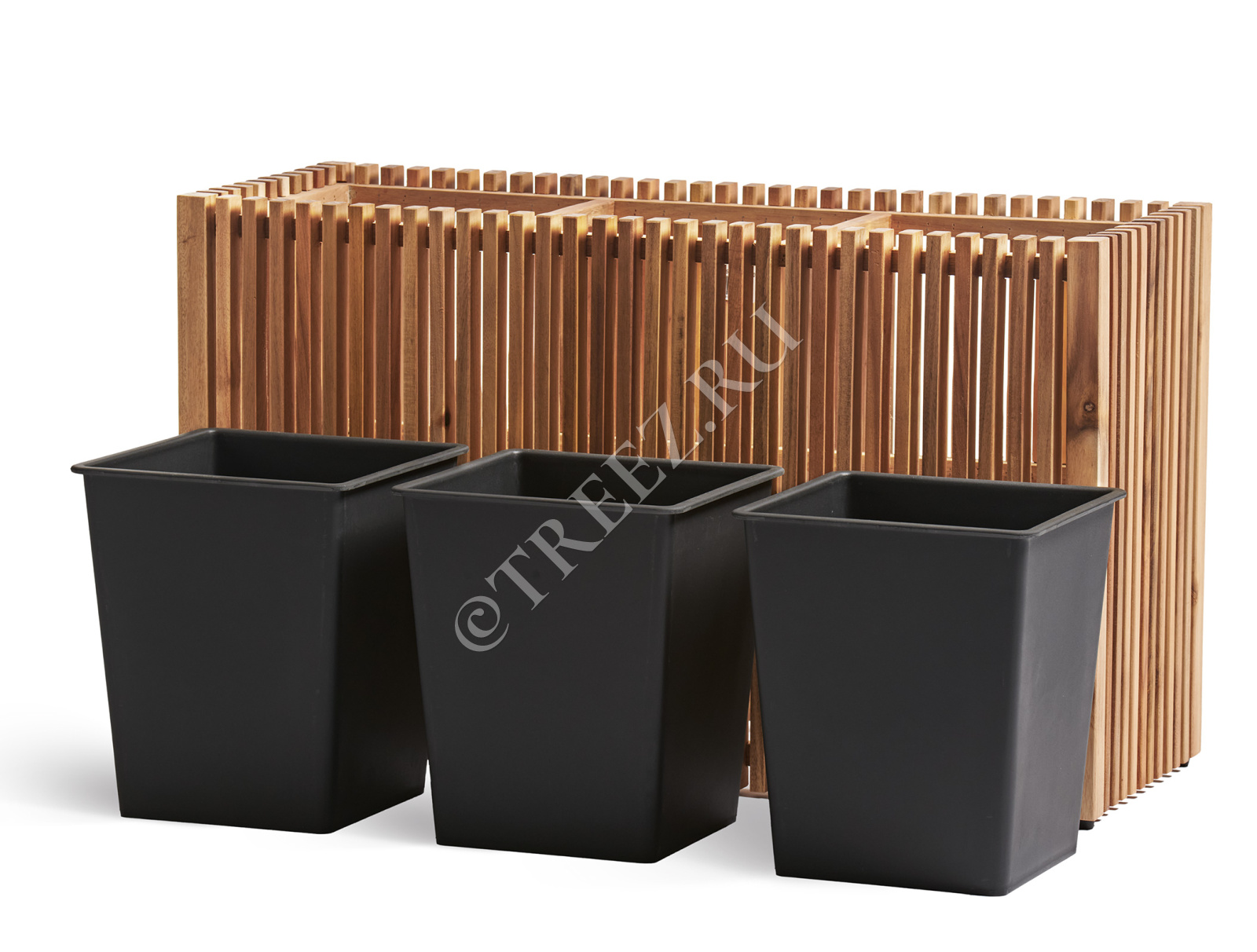 Кашпо Treez Effectory серии Timberline созданы из натуральной древесины тропической акации. Она отличается особой прочностью и не подвержена гниению.