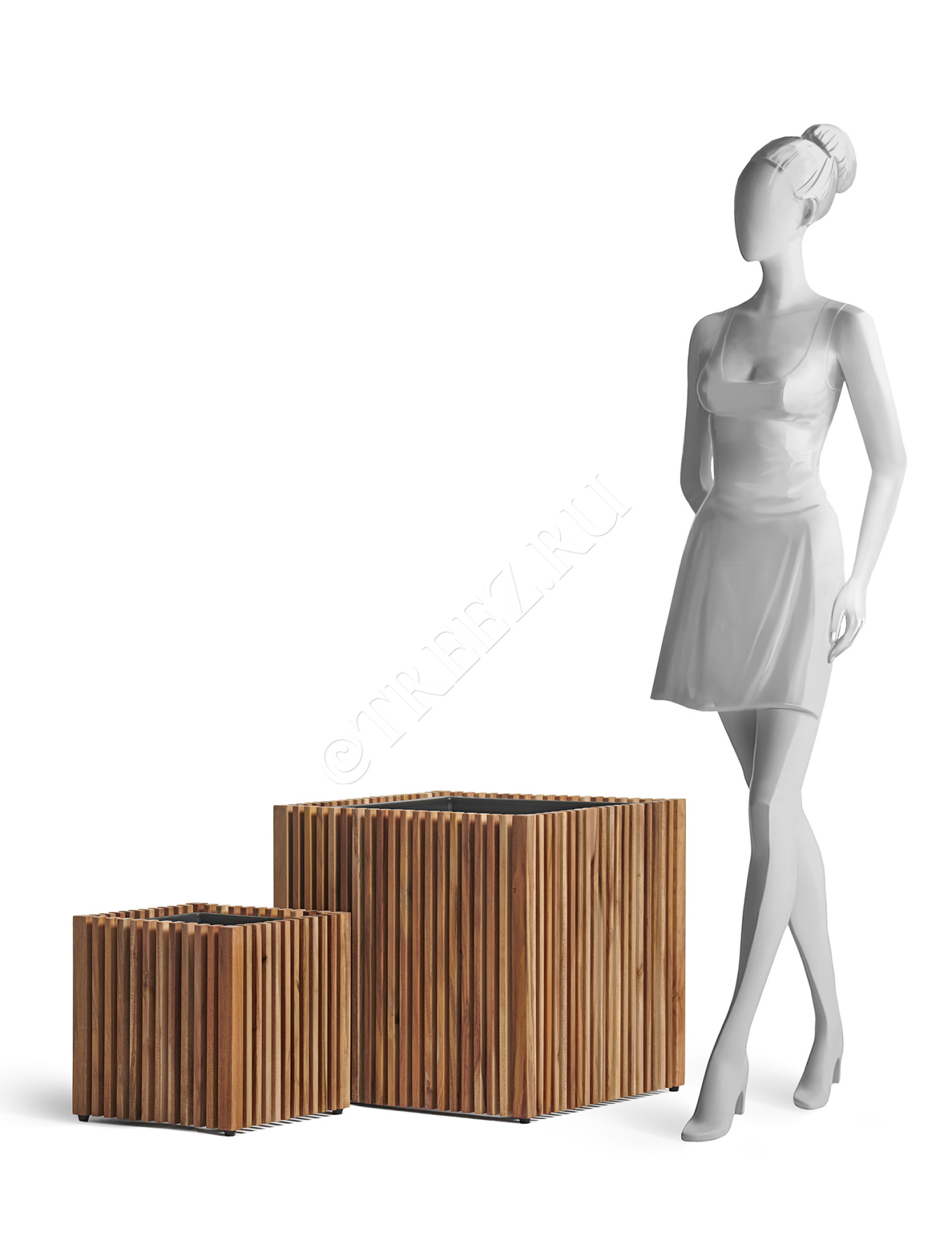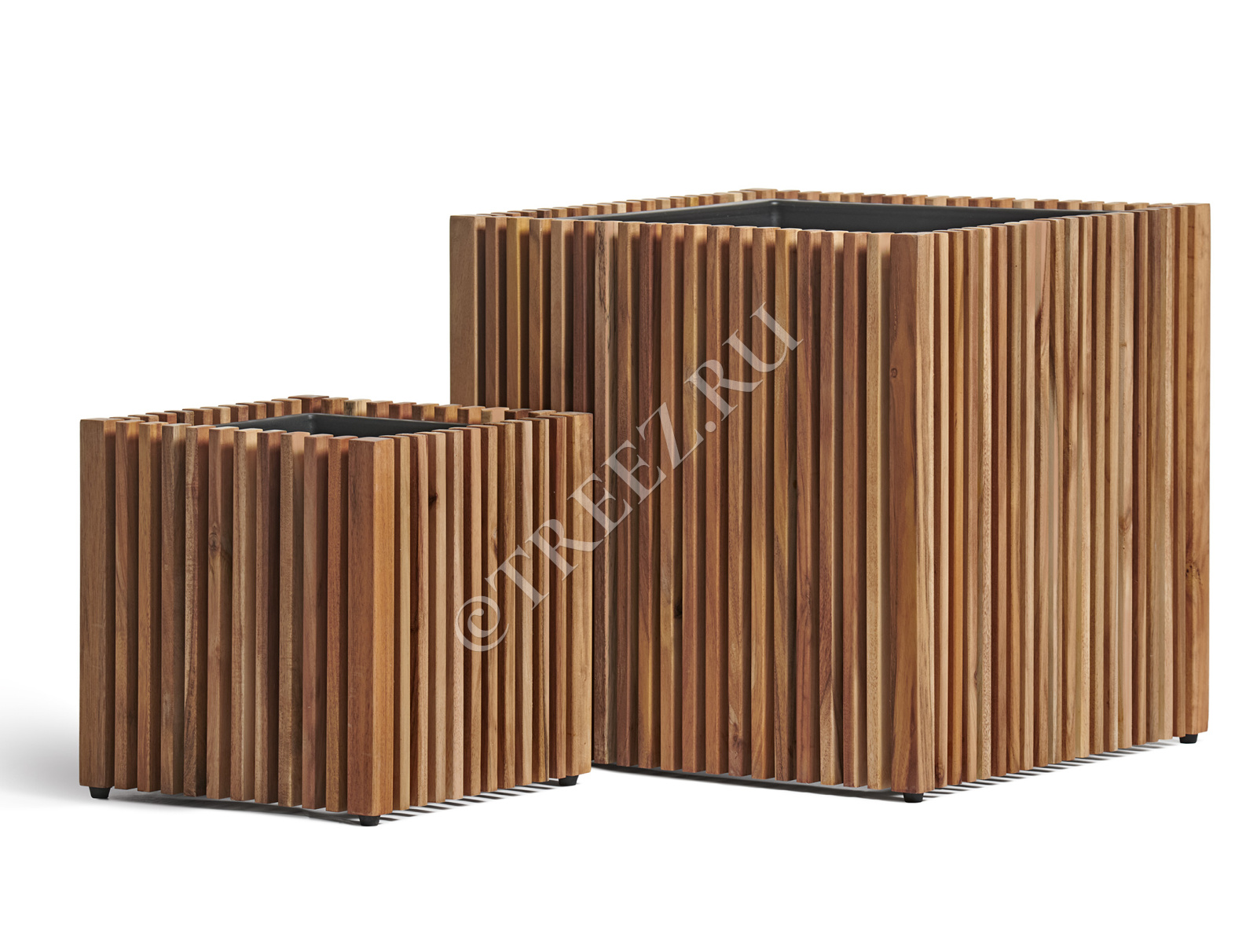 Кашпо Treez Effectory серии Timberline созданы из натуральной древесины тропической акации. Она отличается особой прочностью и не подвержена гниению.