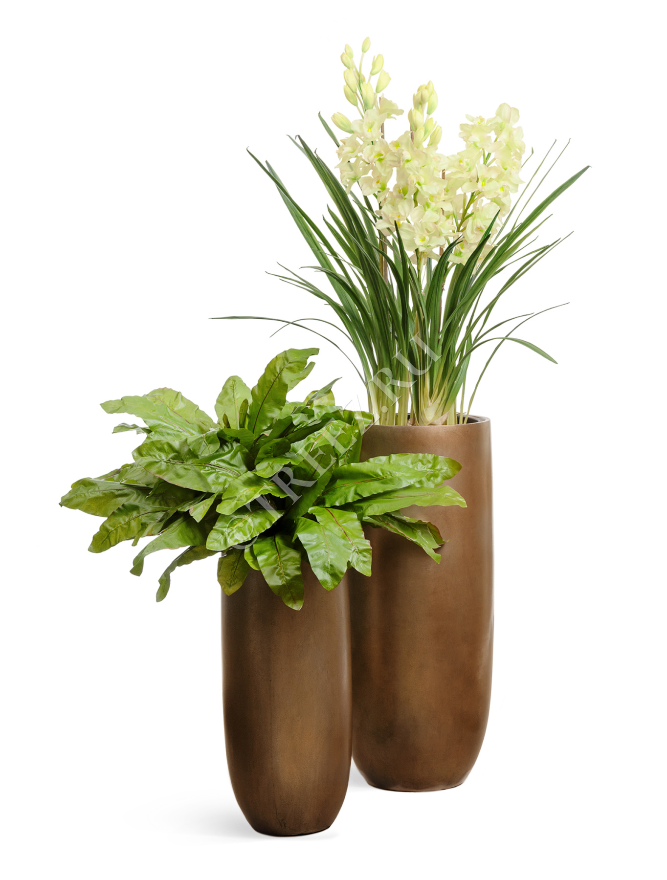 Кашпо TREEZ Effectory - Metal - Высокий конус Design Wave - Чернёная бронза