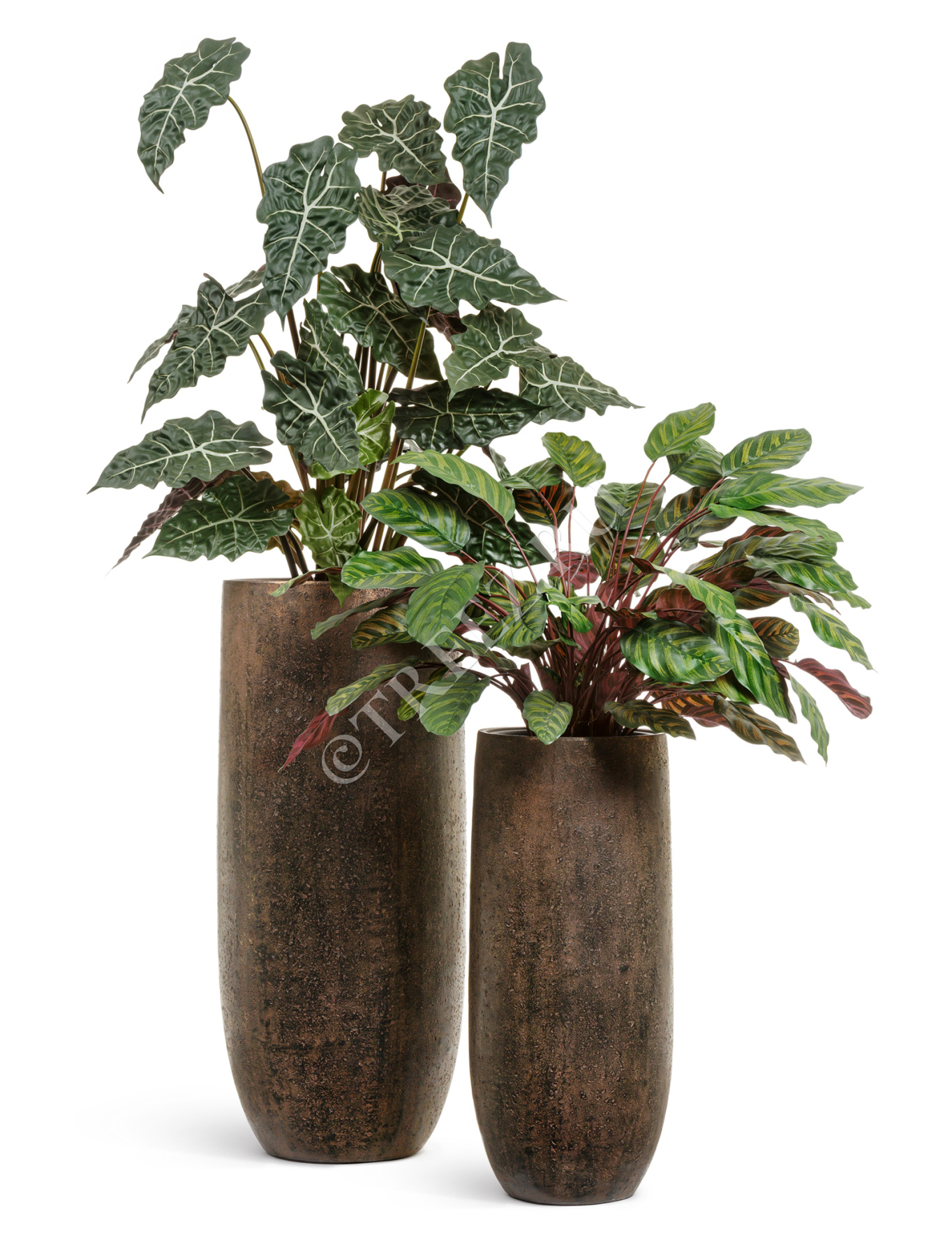 Кашпо TREEZ Effectory - Metal - Высокий округлый конус - Rough с золотой патиной