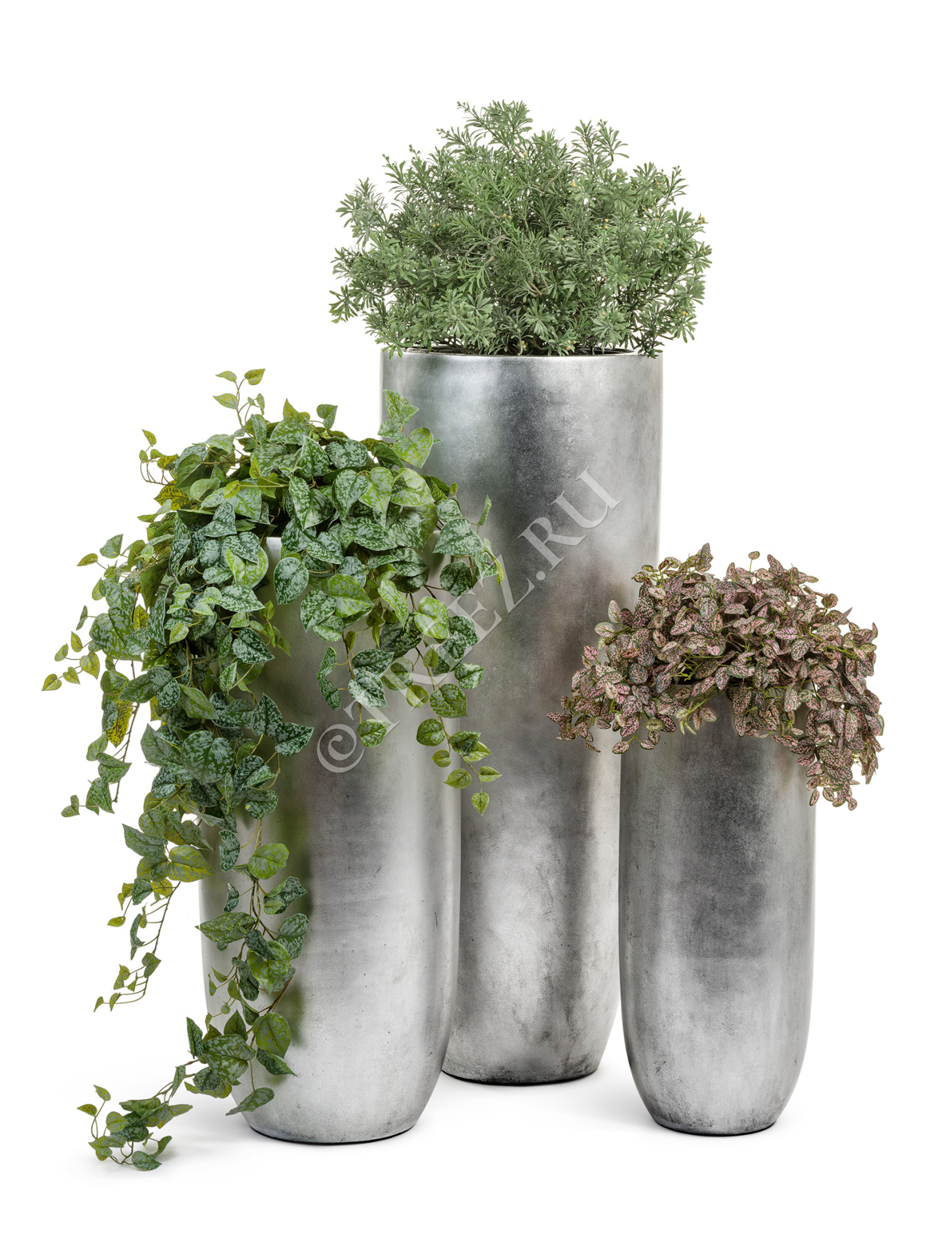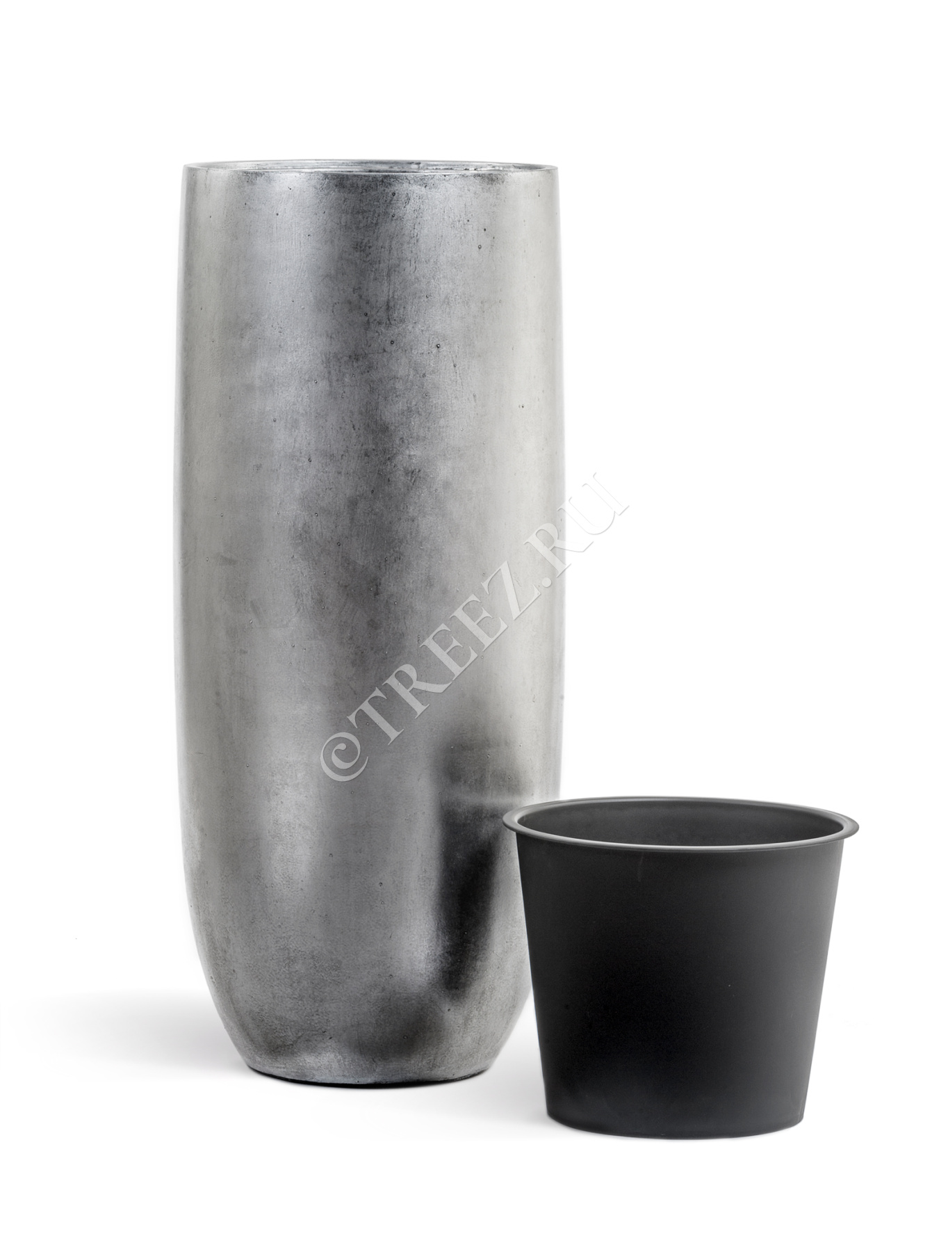 Кашпо TREEZ Effectory - Metal - Высокий округлый конус - Серебро