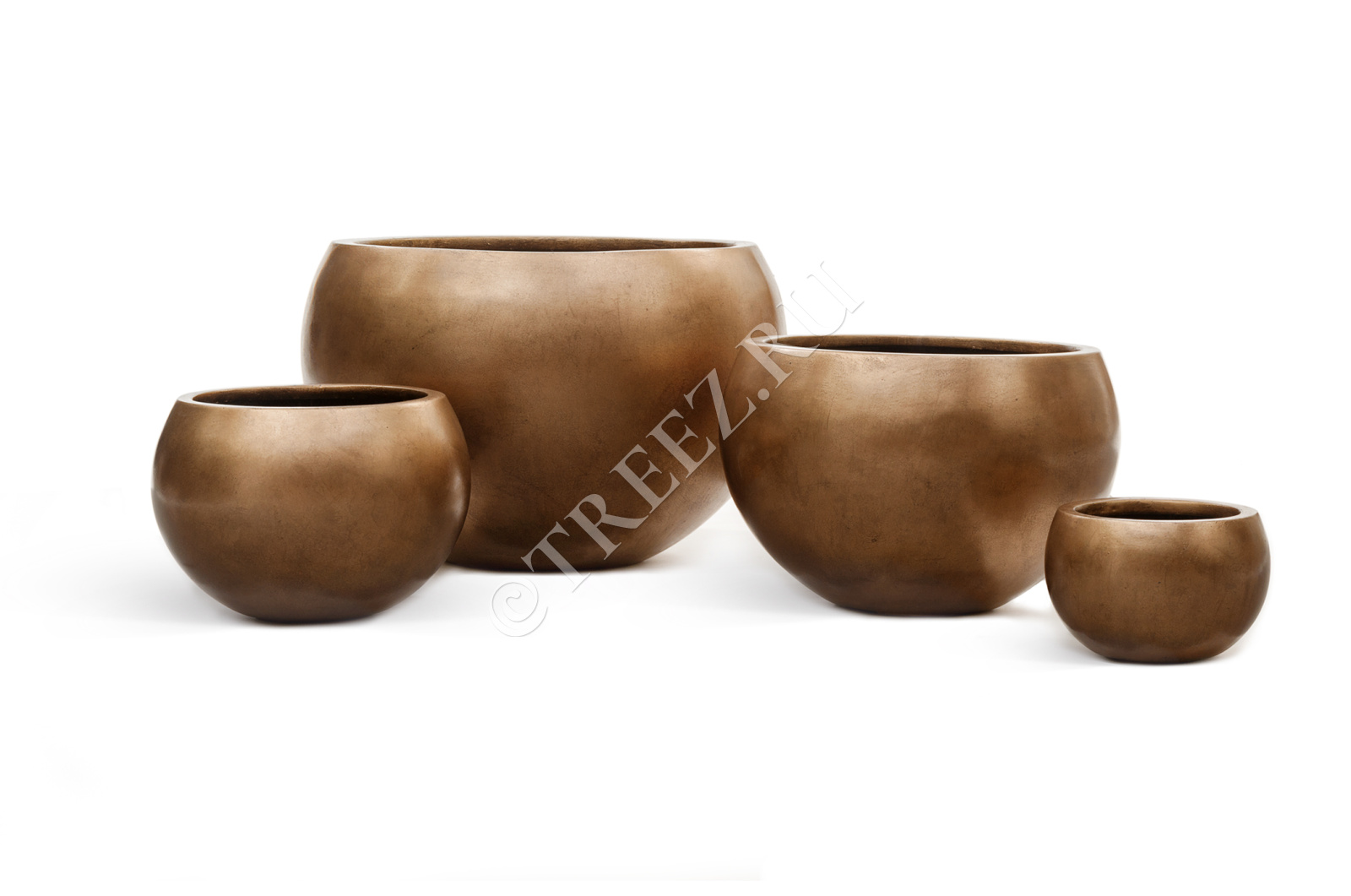 Кашпо TREEZ Effectory - Metal - Округлая чаша - Rough с золотой патиной