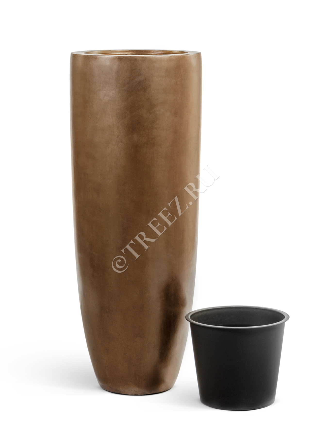 Кашпо TREEZ Effectory - Metal - Высокий округлый конус - Лаковое тёмное золото