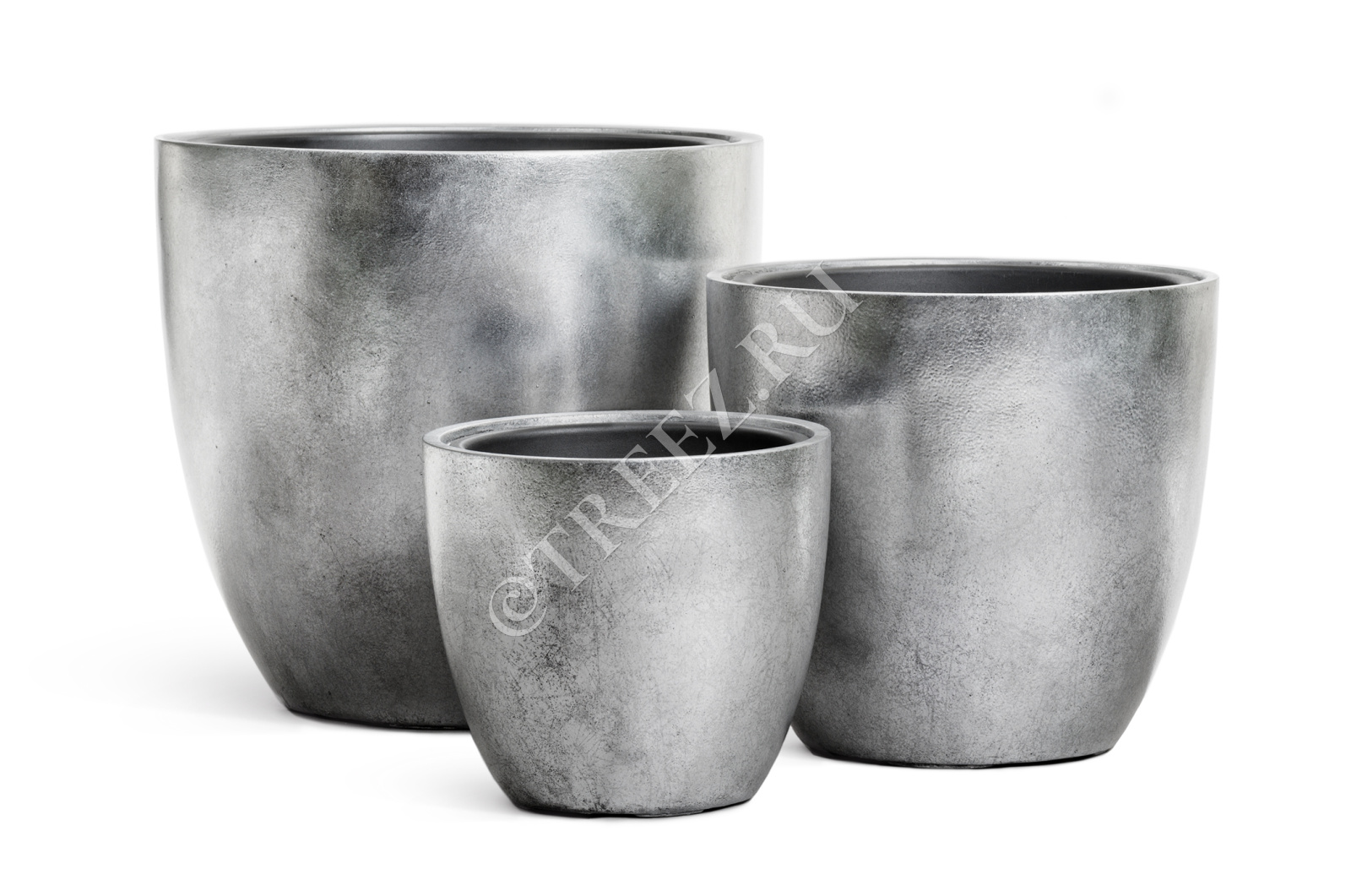 Кашпо TREEZ Effectory - Metal - Низкая конус-чаша - Стальное серебро