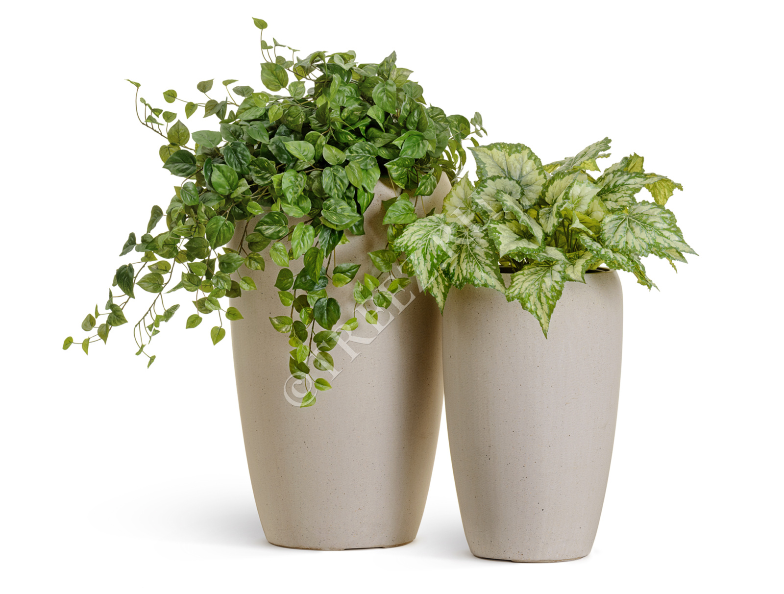 Серия Beton имитирует модный и востребованный дизайнерами бетон. Поверхность кашпо имеет вид обработанного интерьерного бетона, а лёгкий вес и повышенная прочность делают их лучшей альтернативой тяжелому и хрупкому настоящему бетону.