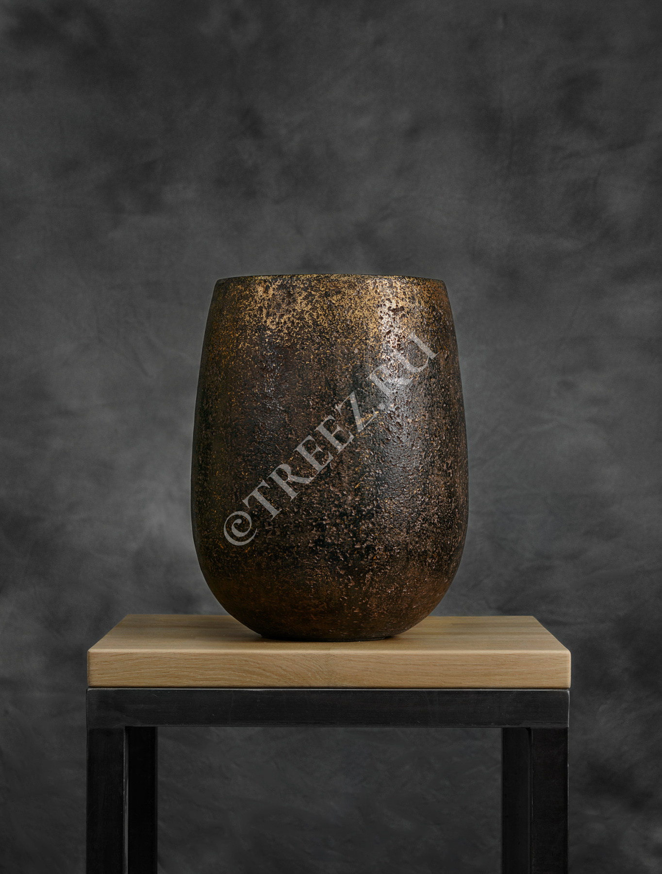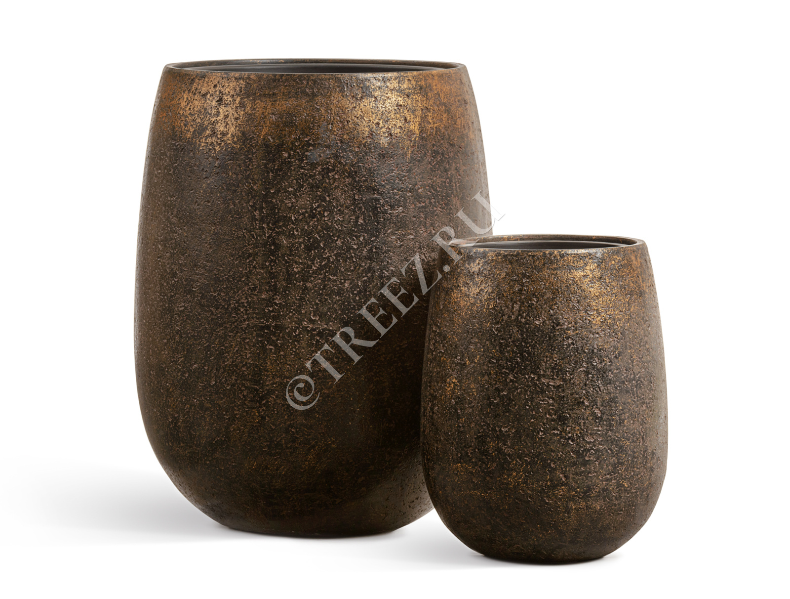 Кашпо TREEZ Effectory - Metal - Округлая чаша - Rough с золотой патиной