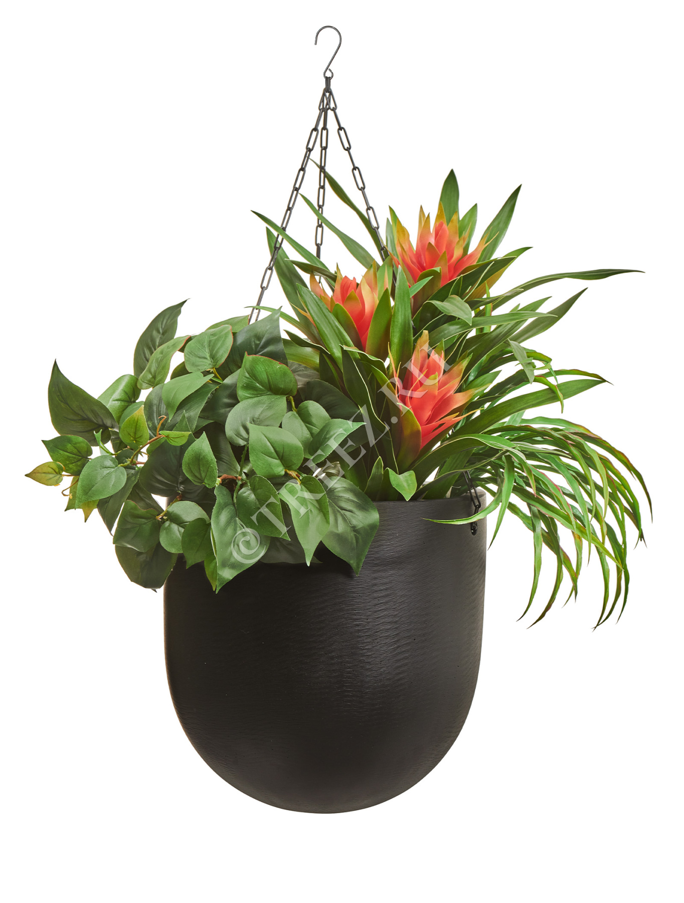 Сет № 10 - Композиция с гусманией в кашпо Treez Effectory Black Stone Чаша подвесная антрацит