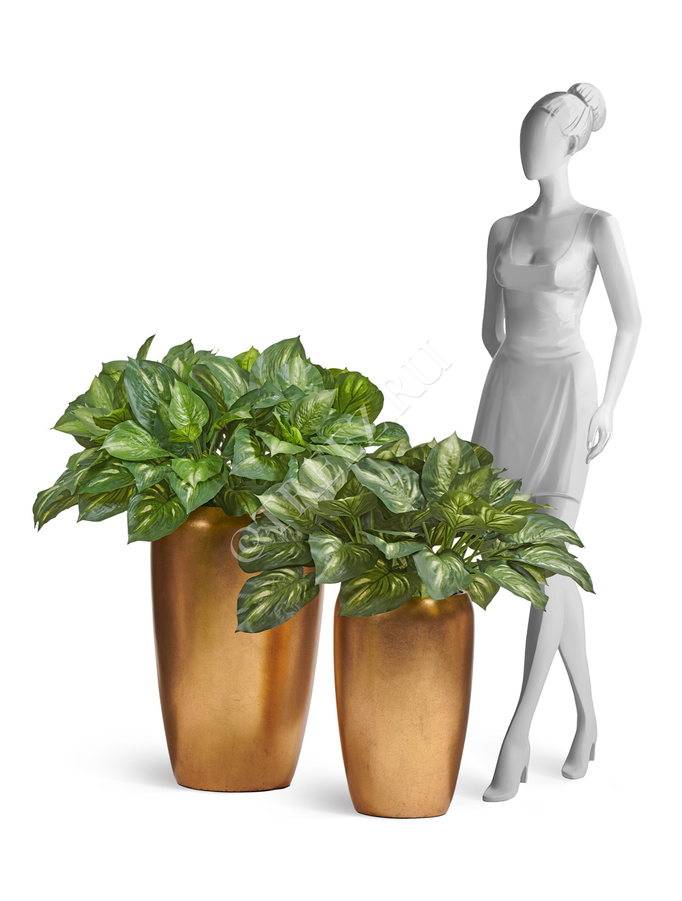 Сет № 126 - Композиция с хостами в золотых кашпо Treez Effectory MetalEffectory Metal