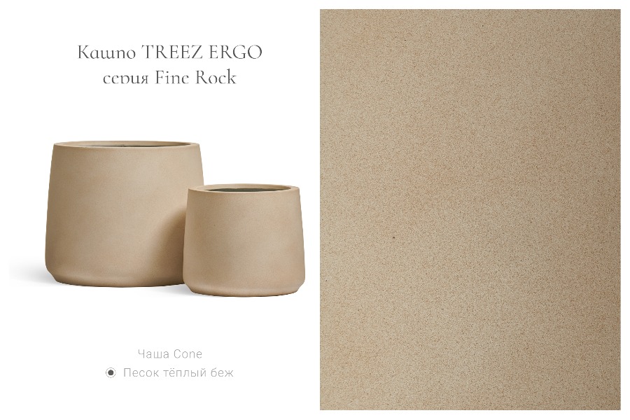 Элегантные кашпо коллекции TREEZ Ergo Fine Rock изготовлены из современного материала фибробетона (FibreReinforced Concrete, FRC®) – прочного композитного материала на основе натуральной каменной крошки.